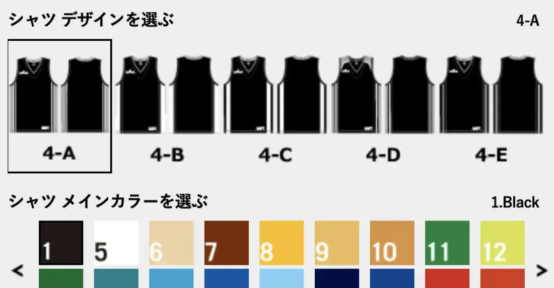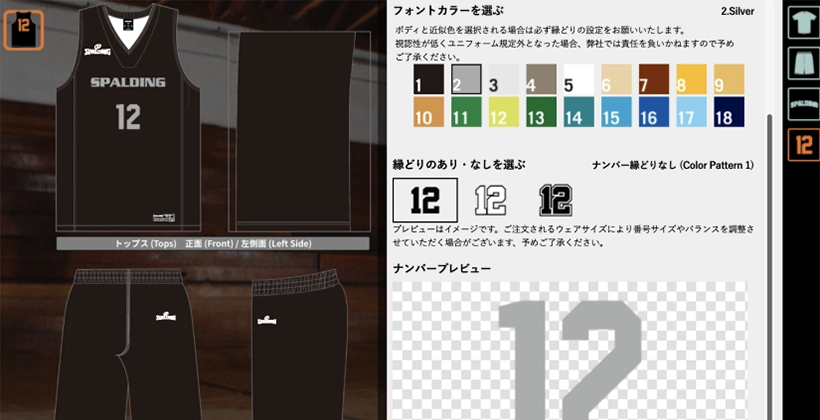 デザインが決定したら、サイズの選択、背番号や個人名などマーキング情報の入力を行います。