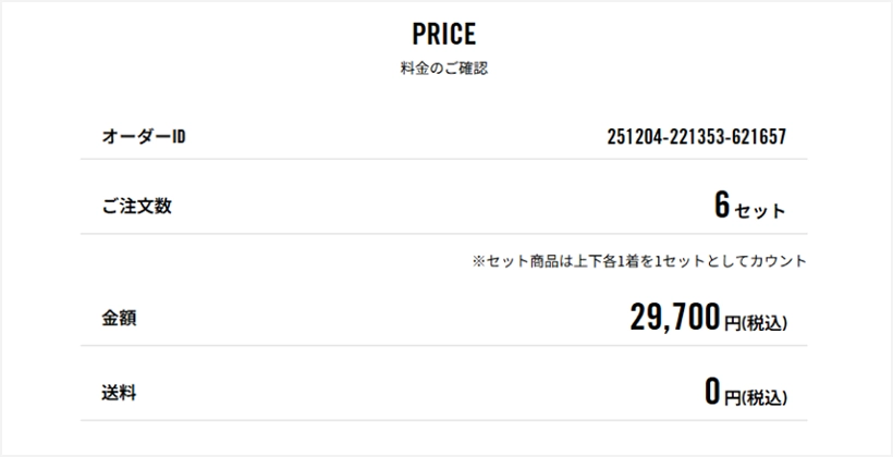 注文内容、金額をご確認いただき、問題なければ注文確定を行なってください。